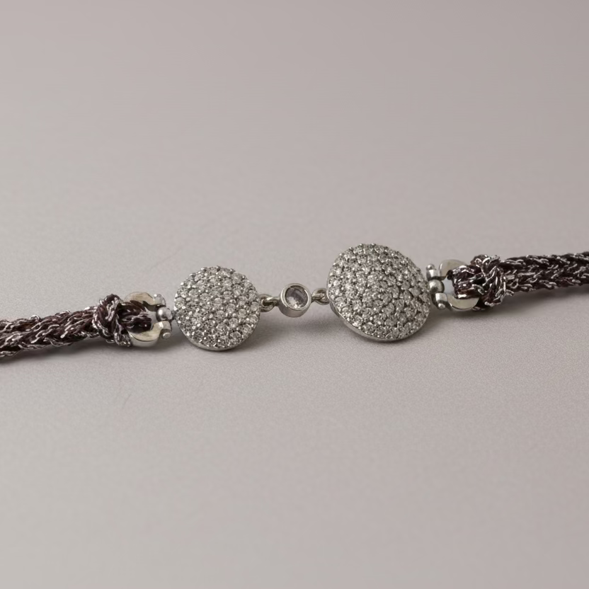 Pulsera de plata con dije redondo y circones blancos.